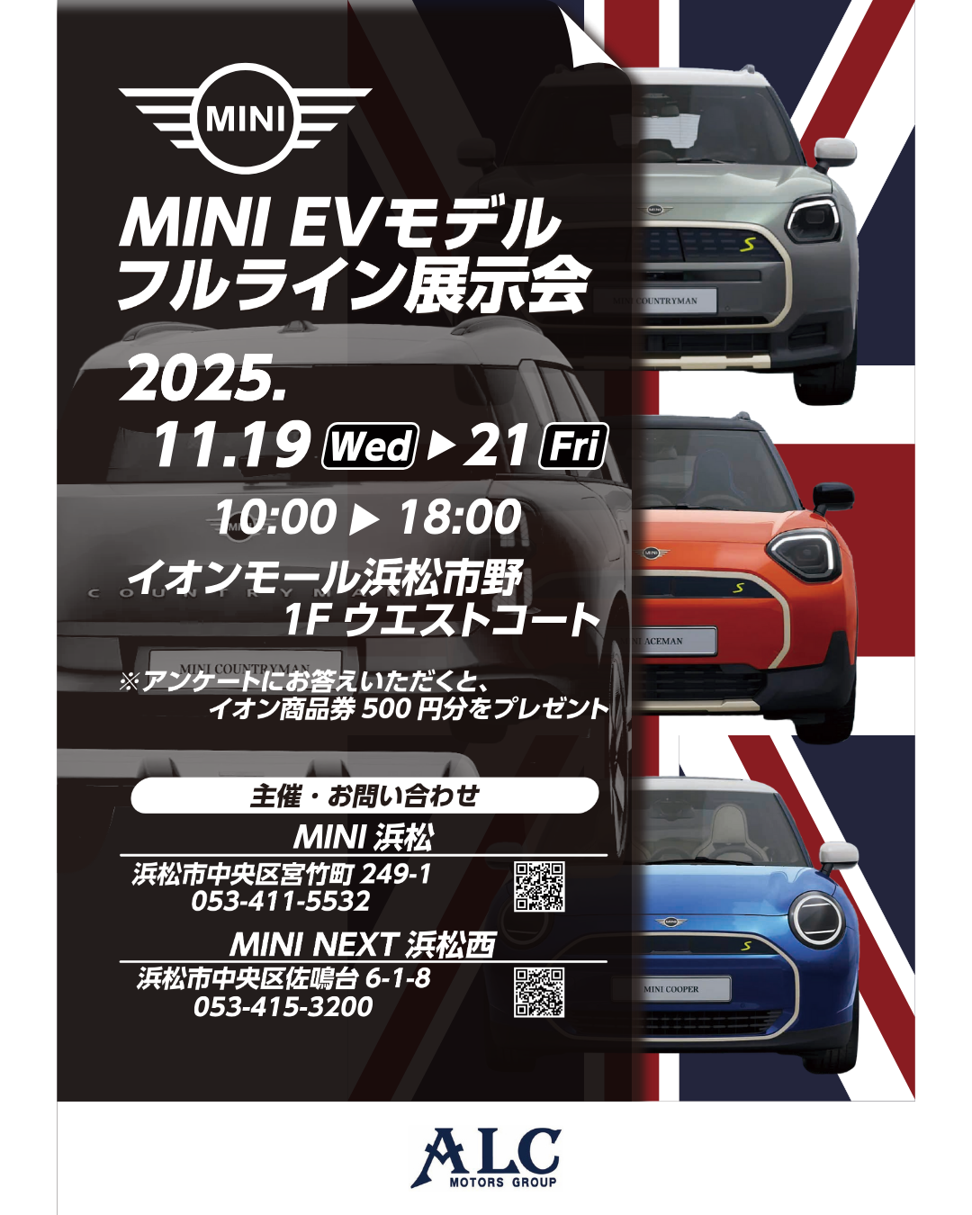 11/19(水)~11/21(金)にイオンモール浜松市野店にて、【MINI EVモデルの展示会】を開催いたします🎉