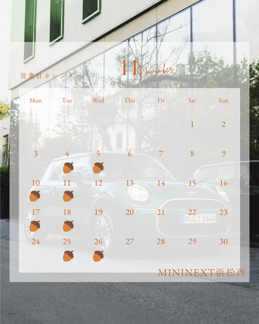 11月の営業日に関しましてご案内いたします📢