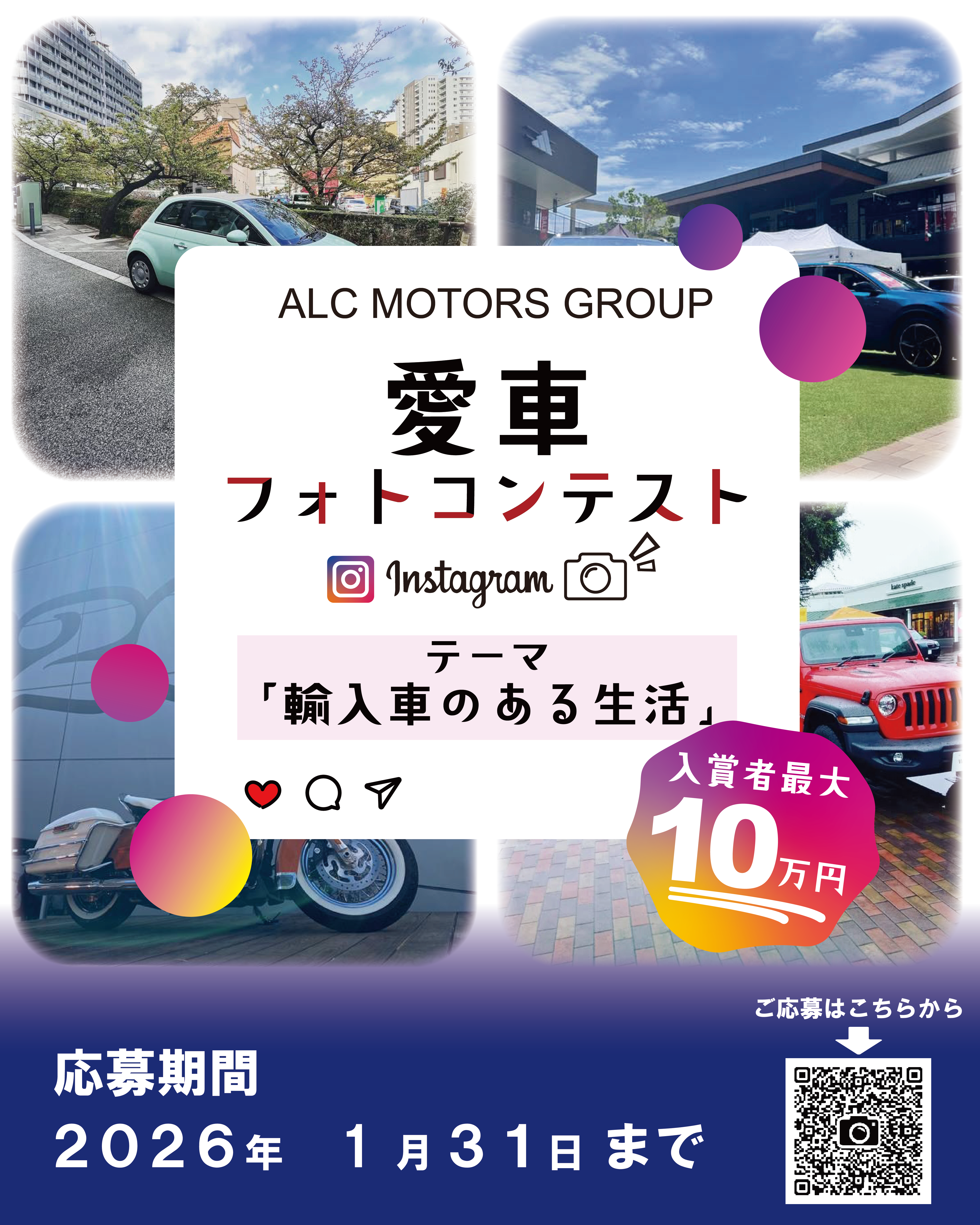 ・ご応募いただいたお写真をInstagramにて「#ALC愛車フォトコンテスト」を付けて投稿ください。