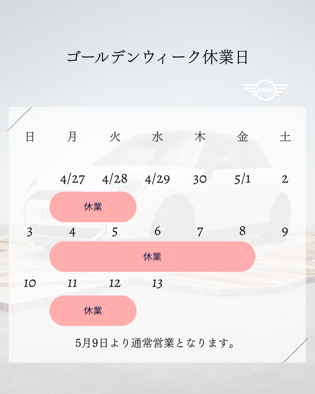5/4(月)~5/8(金)は営業・サービス共に休業とさせて頂きます。